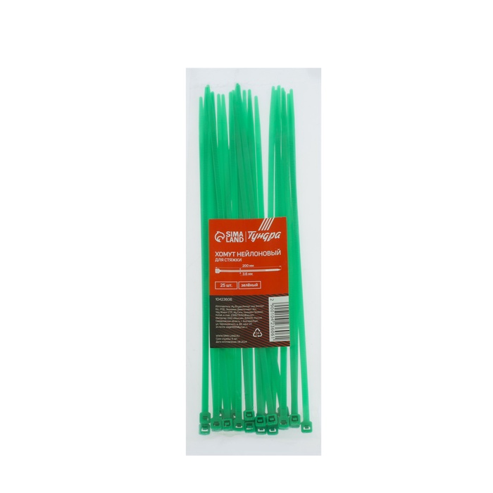 Хомут нейлоновый для стяжки, ТУНДРА, 3,6х200 мм, зеленый, 25 шт