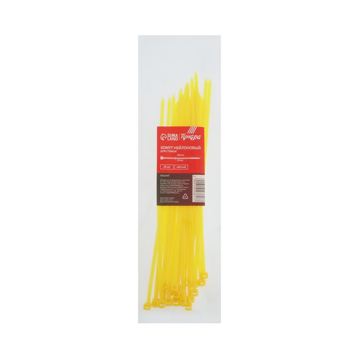 Хомут нейлоновый для стяжки, ТУНДРА, 3,6х200 мм, желтый, 25 шт