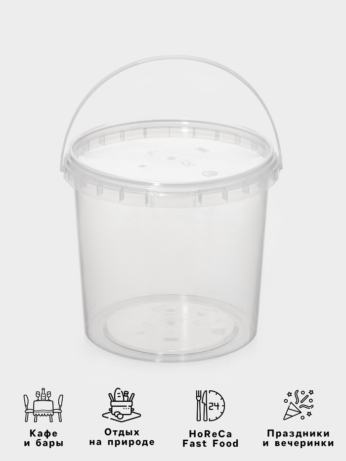 Ведро одноразовое с крышкой, пластик, 2 л, d=17.3 см, пищевое, прозрачное
