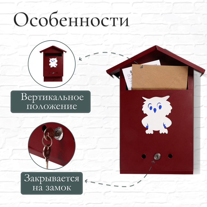 Ящик почтовый с замком, вертикальный, «Филин», бордовый