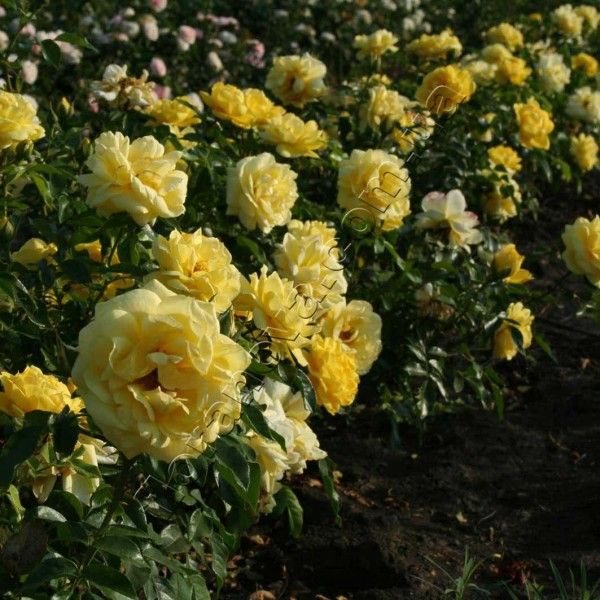 Роза парковая Эмиль Нольде – кустовой сорт розы был выведен в Германии в 2002 году селекционером Хансом Юргеном Эверсом. Характеризуется данный сорт очень большим количеством ярких желтых цветов. Это сильнорослый, очень крепкий и прочный куст, с большим количеством базальных побегов. В высоту вырастает до 1 метра и в ширину до 60 см. Листва плотная, ярко-зеленая, глянцевая, среднего размера. Начинате цвести уже в июне. Бутоны овальной формы, ярко-желтого цвета, собираются в соцветия, от 3 до 5 цветов на одном стебле. Обладает очень легким и нежным ароматом, еле уловимом. Для высадки желательно подобрать открытое солнечное место или полутень. Сажать саженцы роз с закрытой корневой системой можно весной, летом и осенью. Летом самое главное выбрать прохладный или дождливый день, а осенью успеть посадить саженцы за три недели до предстоящих заморозков. Обладает неплохой морозоустойчивостью, до -23 градусов, что позволяет высаживать их по всей территории России. При укрытии нетканым материалом способна пережить и белее сильные морозы. Отлично адаптируется при посадке, имеет хороший иммунитет к вредителям и заболеваниям. Данный сорт прекрасно смотрится как самостоятельное украшение вашего сада, так и в сочетании с другими цветами. Подходит для высадки на клумбе или в розарии, для украшения придомовой территории, для высадки рядом с беседками или террасами. Можно использовать для формирования живой изгороди. Очень обильное цветение с июня по сентябрь дает возможно наслаждать ее красотой продолжительное время. Данный сорт всегда будет привлекать ваше внимание и окружающих своим обильным цветением и неописуемой красотой.