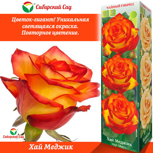 Средний куст с прямостоячими побегами достигает в высоту 80-100 см. Крона не раскидистая, аккуратная и имеет ширину 60 см. Листья тёмно-зелёного цвета, с приятной матовой поверхностью. Задняя поверхность чуть светлее передней. А также на ней есть небольшое опушение, виднеются прожилки. Двухцветный цветок среднего размера достигает в диаметре всего 4-6 см. Форма у бутона высокая, а вот форма цветка простая, классическая. Бутон относится к густомахровому типу. В одном цветке закладывается около 40 лепестков. Каждый лепесток необычен, его окрас плавный, переливается из одного цвета в другой. В основном цвет бутона жёлто-оранжевый или жёлто-красный. Кончик лепестка имеет насыщенный жёлтый цвет, а вот кайма может быть оранжевой или красной. Этот эффект напоминает всполохи пламени. Поэтому цветок называют «высокой магией» или «пылающим пламенем».