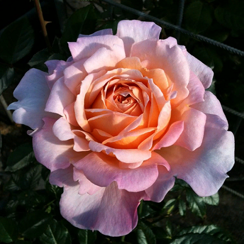 Чайно-гибридная. Бутоны имеют розовый окрас, цветы розово-абрикосовый. Бутоны обладают яйцевидной формой, но когда превращаются в цветы диаметром около 10см, форма становится чашевидной. Сорт густомахровый, поскольку на цветах вырастает до 65 лепестков. Все бутоны располагаются в соцветиях, порой вырастают на стебле в одиночку. Если и собираются группами, то по 2-3шт. Побеги на кустах розы прямостоячие, располагаются вертикально. Отличается этот сорт большой силой роста. Все побеги сильно разветвленные. Приблизительная высота кустарника около 1м, ширина розы этого сорта до 0,5м. Листья у розы темного зеленого цвета, с привлекательным глянцевым блеском. Аромат розы оценивают как сложный, пряно-цветочный. Поскольку в нем присутствует много нот: персик; зеленая груша; абрикос; магнолия; жасмин.