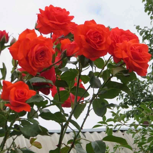 Плетистая. Цветки у нее яркие, оранжево-красного цвета с коралловым оттенком, который со временем выгорает до темно-розового, диаметром около 8см. По форме напоминают чайно-гибридные розы, махровые – в каждом по 25–40 лепестков. Распускаются они по одному или же собраны в кисти по 5 штук. Цветет очень обильно и практически непрерывно. Кусты у Салиты мощные, высотой до 3м и диаметром до 1,5–2м. Нарастают в высоту довольно быстро. Листья темно-зеленые, глянцевые, очень эффектно оттеняют пламенеющие на солнце цветки. Зимует этот сорт отлично. Устойчив к мучнистой росе, но поражается черной пятнистостью. Цветки хорошо переносят дожди, долго не увядают.