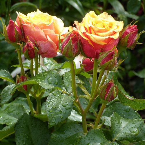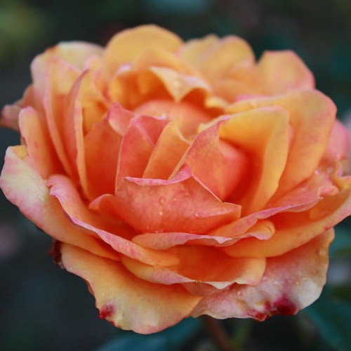 Чайно-гибридная. Роза необычного цвета. Куст сильнорослый, прямостоячий, компактный, высота 70-90см. Листья темно-зеленого цвета, блестящие. Цветы имеют форму бокала, крупные, 8-10см в диаметре. Внутренняя сторона лепестков имеет оранжевый цвет, внешняя сторона винно-красная. Имеет легкий аромат с фруктовыми нотками. Цветёт с конца июня до первых заморозков. Светолюбива, предпочитает солнечные места, достаточно засухоустойчива. Зимостойкость - высокая._x000D__x000D_Поставка: весна 2026г.