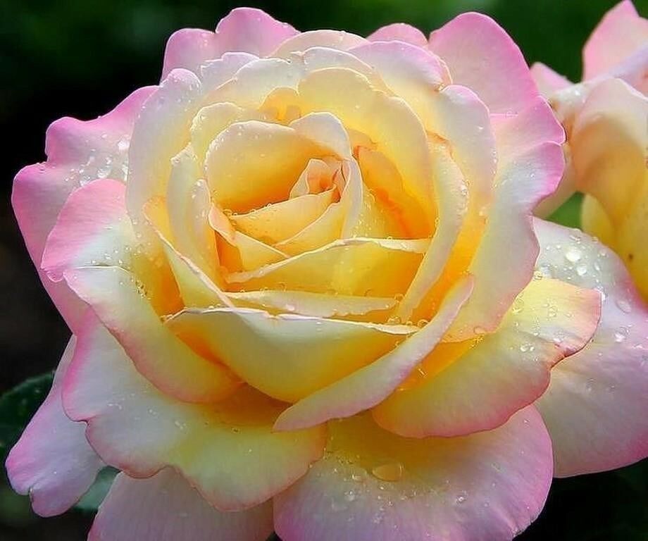 Цветки Gloria Dei, с их бледно-желтой основой и розовым краем, восхищают своей махровой красотой и величием. Уникальная в своем сильном росте и стойкости, она остается преданной своей легенде, даже когда меняется оттенок её золотистых лепестков.