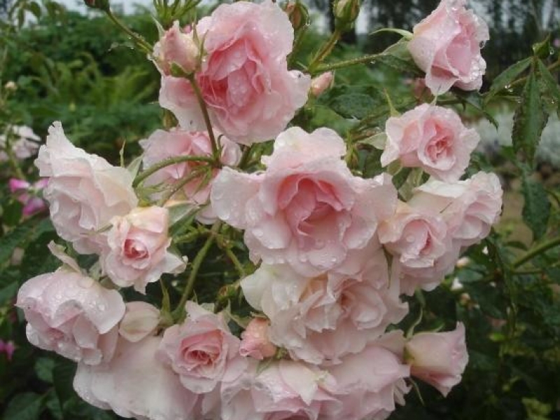 Чисто-розовые цветки из 17-25 лепестков, чашевидной формы, собраны в большие соцветия, в полном роспуске показывают серединку. Ветви дугообразные, ниспадающие с крупной, глянцевой листвой. Цветет обильно двумя волнами. На дождь практически не реагирует. Устойчивый сорт.