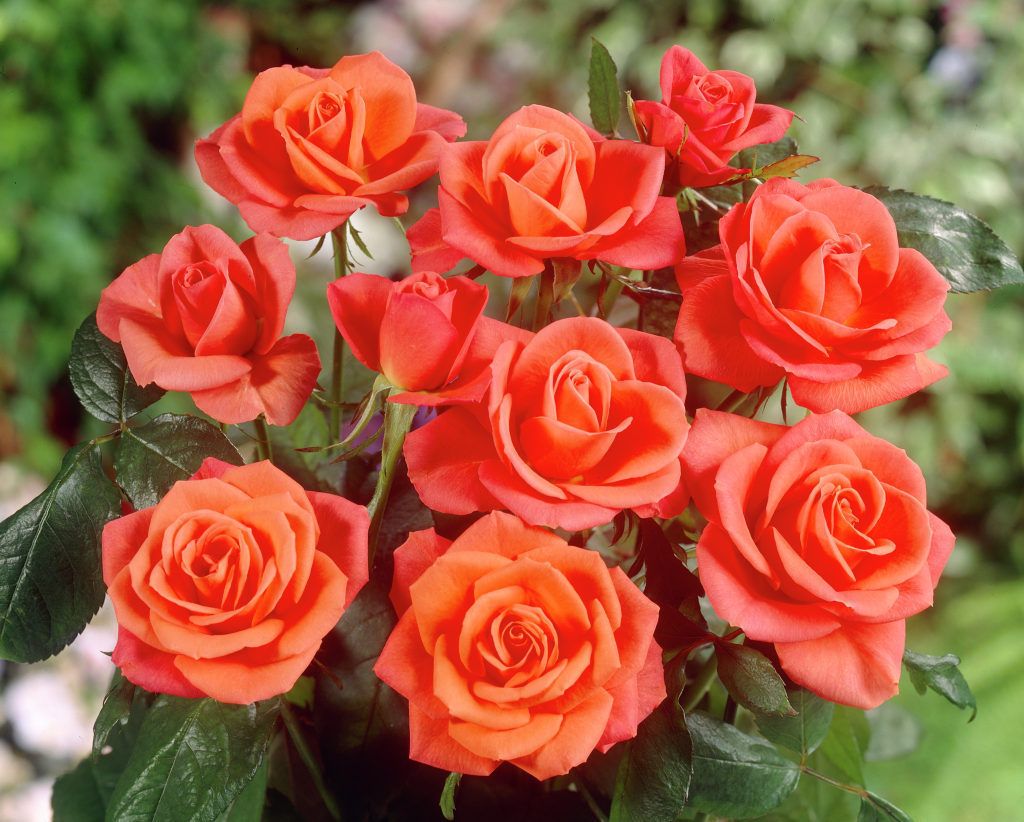 Один из популярнейших сортов в мире, который и сегодня остаётся непревзойдённым, благодаря восхитительному ярчайшему цвету и приятному сильному аромату. Бутоны изящные. Цветки лососёво-оранжевые, диаметром 8-10 см, махровые (30-35 лепестков). Многочисленные цветы этого сорта можно снова и снова срезать в вазу. Листья тёмно-зелёные, блестящие, кожистые. Кусты прямые, выглядят радостно. Цветение обильное. Сорт восприимчив к мучнистой росе. Имеет множество золотых медалей! Аромат: лесной малины, великолепный, сильный.