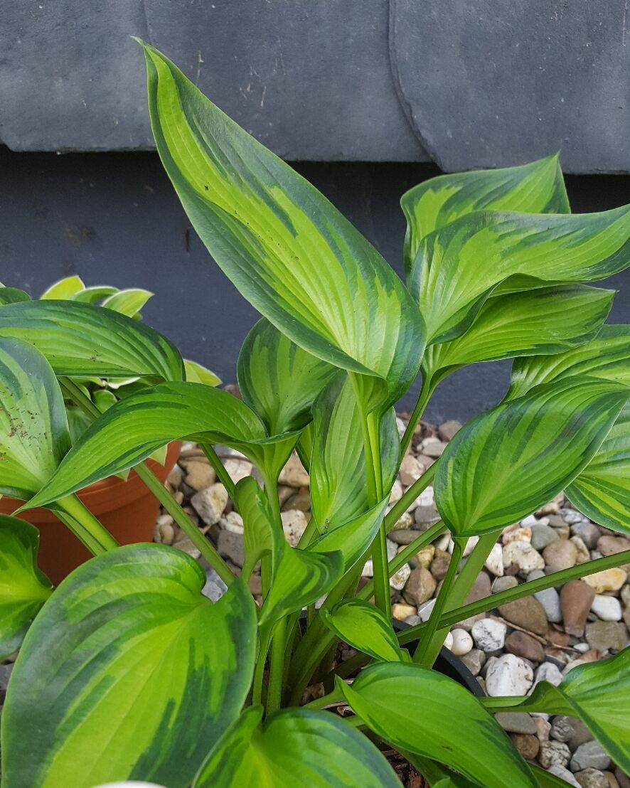 Красивая хоста среднего размера, высотой 35 см и шириной 50-60 см. Листья толстые, блестящие жёлтые с широким неравномерным тёмно-зелёным краем. Цветки лавандовые. Цветение в июле. Место полутенистое или тенистое. Почва влажная дренированная. Зона 3 (до -34ºС).