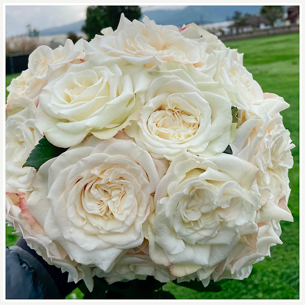 Вайт Эшли-роза с крупными ностальгической, романтичной формы цветками. Цветок открывается на 120%, заканчиваясь в форме зонтика.
