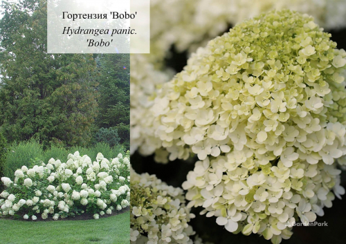 Низкорослый сорт метельчатой гортензии высотой 60-70 см, шириной 50 см. Цветки с переходом от лимонно-зелёного до белого и затем до мягко-розового, собраны в плотные широко конические соцветия. Цветение очень обильное, с конца июля до сентября.
