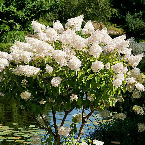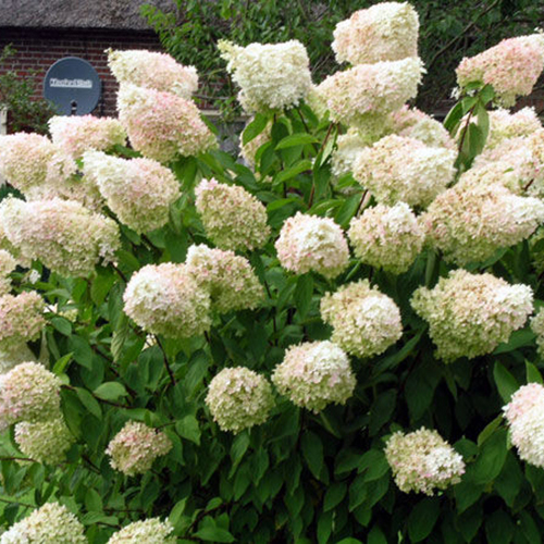 Восхитиельный, высокий кустарник, достигающий в высота до 200 см, с пышным цветением. Цветы собраны в огромные пирамидальные соцветия-метелки, длина которых может достигать 30 сантиметров.В начале цветения имеют кремово-белую окраску. Затем их цвет переходит до чисто белого, постепенно меняясь на розовый. С наступлением осени, к концу цветения, меняет свой цвет на зеленовато-красный. Крона куста очень разветвленная и раскидистая. Листья куста овальные, имеют средние размеры.