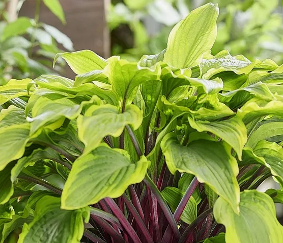 Хоста Липстик Блаш (С1,5). Новинка! выведена Хемскерк Васте Плантен, как спорт от сорта Липстик Блонд. Высота 30 см, ширина 50 см. В отличие от родителя, куст имеет зеленые листья с желтой каймой, расположенные на красных черешках. Сами листья удлиненные, и желтый край не однородный, где-то уже, где-то шире, иногда заходящий желтыми языками на зеленый фон. Лист по краям немного волнистый, а в середине чуть жатый. Очень интересные качества собрала эта хоста! Куст красивой формы- фонтан. Подходит для выращивания в полутени.