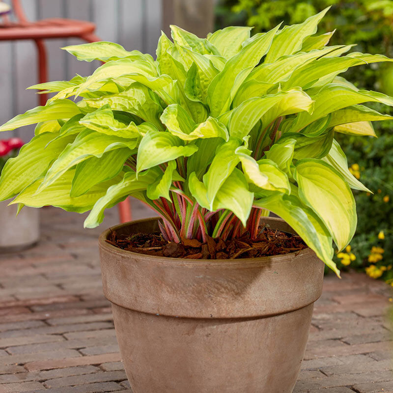 Само очарование среди хост, поцелуй со следами красной помады - вот что приходит на ум при взгляде на ее красные черешки, заканчивающиеся заостренными листьями, светящимися желтым центром, обрамленным светло-зеленой каймой. Цветет хоста в середине лета нежно-лавандовыми цветами на высоких цветоносах.