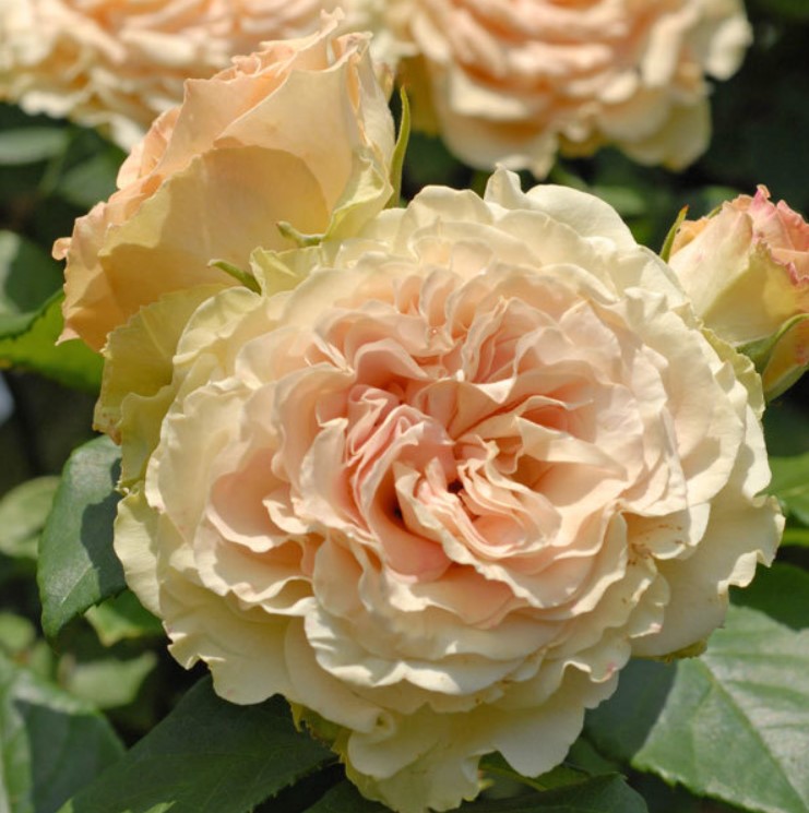 Сорт Emerald Isle (Изумрудный Остров) - повторноцветущий клаймбер, хорошо переносит и дождь, и жару, и холод. Цветки бледно-абрикосовые с более темным оттенком в центре, с салатовыми кроющими волнистыми лепестками. Куст очень выносливый, сильнорослый.