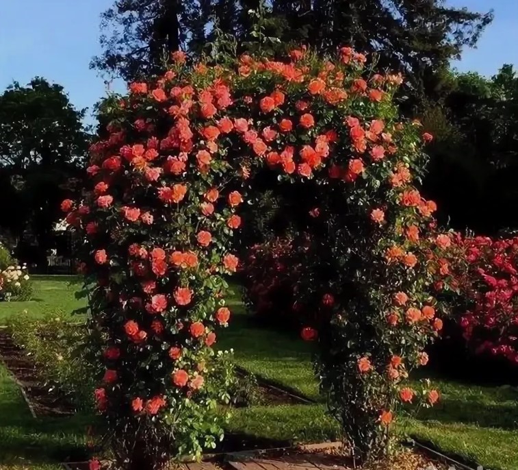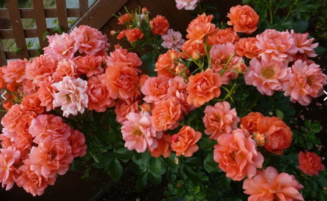 Высокорослая плетистая роза (Cl). Цветки ярко оранжевые, махровые, собраны в большие соцветия с мягким ароматом фруктов. Цветение непрерывное в течении сезона. Цветоносы от средних до длинных. Листва глянцевая, зелёная, очень устойчивая к болезням.