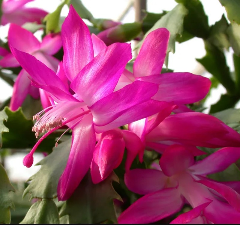 Расцвели через год и фуксиевая, и бело-розовая шлюмбергеры. :) Неописуемой красоты цветы... :) Бело-розовая, видимо, слабее: листья опускает из-за бутонов. Фотографии от 19.02.2026г.