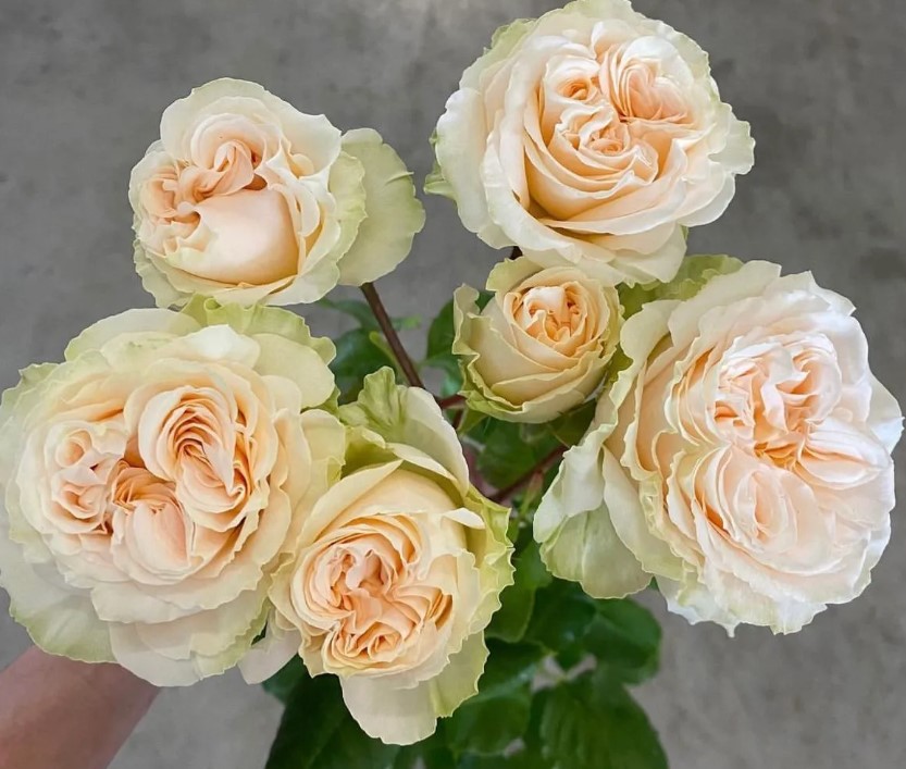 С лепестками чистого светлого розового персика сорт раскрывается в розу среднего размера 10-12 см. Внешние лепестки изгибаются, а внутренние лепестки образуют сложные складки в классическом узоре садовой розы. Ее размер, цвет и аромат делают розу особенно подходящим выбором для свадебного букета.