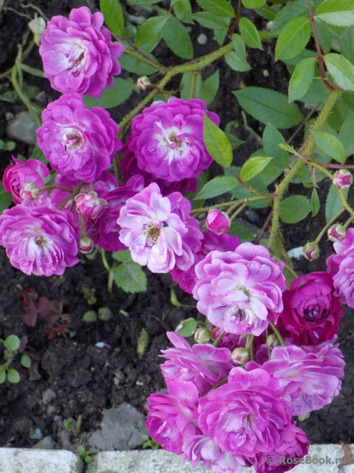 Мелкие сиренево-фиолетовые цветки со светлым глазком в центре распускаются в многочисленных соцветиях. Мягкий аромат виноградных гроздьев. Кустик широкий, густой.