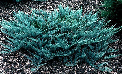 Стелющийся хвойник с голубой хвоей. Крона плотная, побеги короткие, густо расположенные. Взрослые растения при высоте не более 30 см развивают крону диаметром до 1 м. Хвоя игловидная, но встречается и чешуевидная, короткая, голубая или серебристо-голубая, плотная, колючая. Изменяет окраску в зимний период на голубовато-пурпурную.