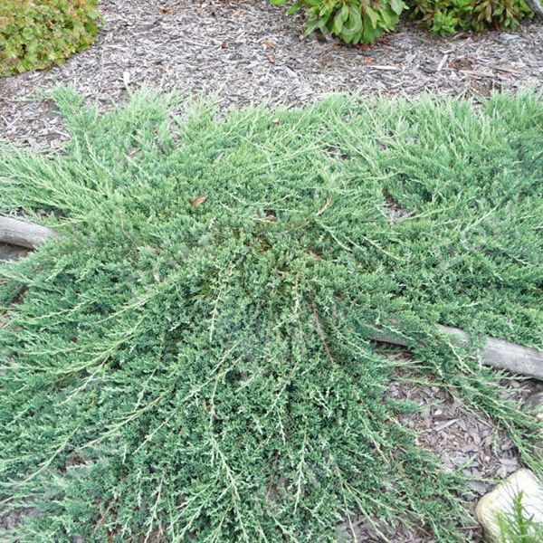 Стелющийся кустарник. Годовой прирост 15 см. Голубовато -зелёные ветви, очень гибкие, быстро разветвляются и стелются по земле, образуя густой 'ковёр'. Хвоя, мелкая, серебристо-голубая, требования к почве и влаге невысокие, место солнечное.