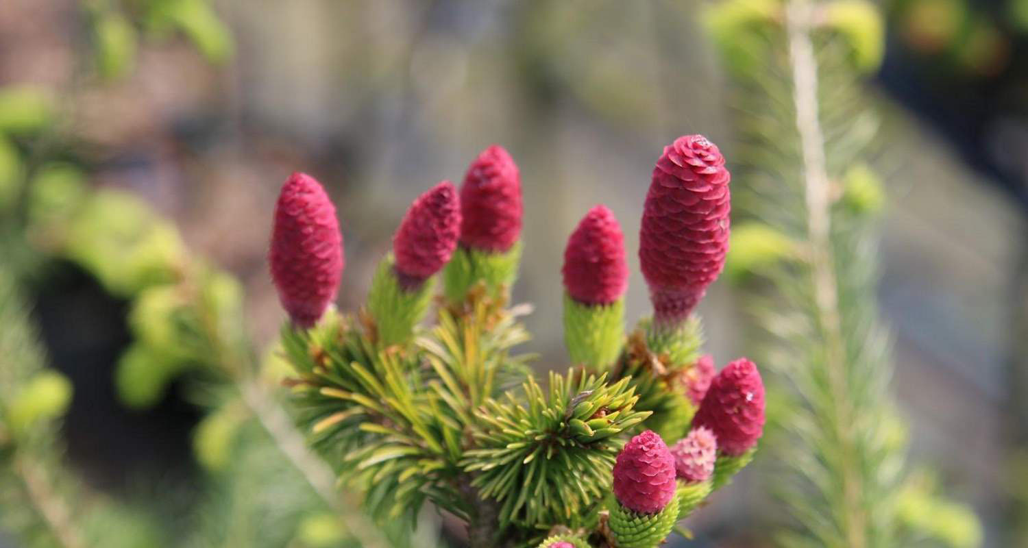 Карликовая ель с интересной особенностью - молодые шишки красного цвета. Отличается от сорта «Pusch» более жёсткими и короткими ветвями, более крупными шишками. После 10 лет достигает 0,3 м в высоту и 0,45 м в ширину. Характерной особенностью сорта является красная окраска молодых шишек произрастающих на концах побегов. Ведьмина метла сорта "Acrocona".
