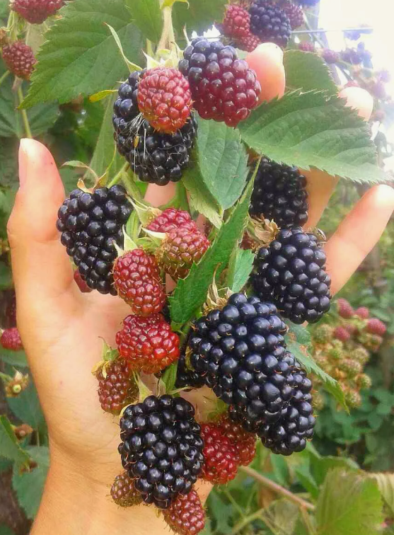 Саженцы малиново-ежевичного гибрида (ежемалины) Marion считаются одним из наиболее ценных малинно-ежевичных гибридов. Большинство специалистов считает его эталоном для сравнения различных сортов. Побеги шиповатые, длинные, до 6 метров. Созревает урожай в ранние сроки, июнь-июль. Ягоды крупные весом до 5 г, сладкие, обильные, красивые. Имеют продолговатую форму и черный цвет при полной спелости. Вкус и аромат очень приятные. Урожаи регулярные, больше чем у аналогичных гибридов. Зимостойкость до -14. июнь-июль самоплодное 2 0,5-0,8 м