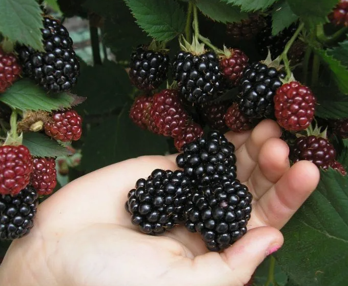 Бесшипный сорт. Куст мощный, невысокий, полустелющийся. Побеги толстые, округлой формы, не имеют шипов. Боковые ветви без воскового налёта и с некоторым опушением. Плодоношение начинается на второй год жизни побега. Листья ежевики Торнфри крупные, дваждыпильчатые, слабоопушённые, тёмно-зелёного цвета. Ягоды большие, весом 4,5-5,0 г, чёрные, правильной овальной формы, пригодны для замораживания. Они имеют крупные костянки и слабое опушение. До стадии зрелости ягоды сохраняют глянец. Достигнув максимальной спелости, они становятся матовыми, сладкими, приобретают заметный аромат, но их консистенция становится менее плотной, поэтому ежевику собирают в состоянии технической зрелости. Ежевика Торнфри очень урожайна. При правильном уходе, достатке солнечного света и влаги с одного куста собирают до 20 кг ягод за сезон. Сорт устойчив к засухе и жаре; слабоустойчив к морозам. середина июля; середина-конец августа самоплодное 2 0,5-0,8 м