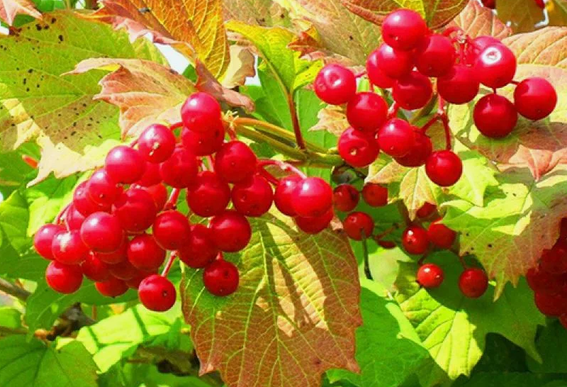 Высокорослая культура представляет собой дерево с 5-ю скелетными ветками. Растет калина до 350 сантиметров в высоту, диаметр составляет 300-400 см. Широкораскидистая крона сформирована из гладких светло-серых побегов с крупными почками, а также из пятилопастных простых листьев большого размера. В конце мая или начале июня дерево зацветает, покрываясь соцветиями 10-сантиметрового размера. Они имеют форму зонтиковидного щитка. Соцветия белые и очень ароматные, поэтому калина привлекает в сад опылителей – пчел. Плоды поспевают в средние сроки, обычно к концу сентября. Как и соцветия, грозди имеют зонтиковидную конфигурацию. Ягоды же эллипсоидально-заостренные, довольно крупные, массой в 0,6 грамма. Окрашены они в светло-красный цвет, содержат внутри внушительную косточку. Вкус у таких плодов горький. конец сентября Гранатовый Браслет, Ульгень 4 0,6-0,8