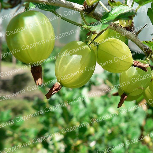 Компактный, среднеспелый сорт. Куст сильнорослый, слабораскидистый. Побеги шиповатые. Ягоды оливкового цвета с прожилками, имеют удлиненно-овальную форму. Их масса 6-8 г. Ягоды ароматные, кисло-сладкого вкуса с тонкой кожицей. Морозостоек. Урожайность: 4-7 кг ягод с куста.