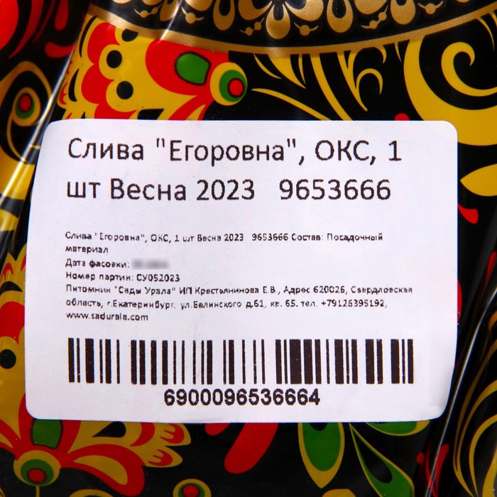 Саженец Слива привитая (ОКС) Егоровна, 1 шт, Осень 2025