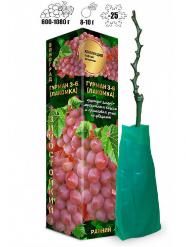 Саженец Виноград киш-миш Гурман 3-6 (Лакомка) (розов, ранн), 1 шт , Весна 2026