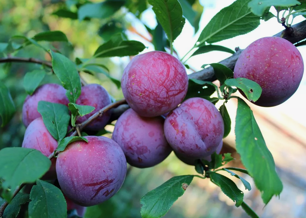 Слива "Алма" - это среднерослое дерево с умеренным темпом роста, которое характеризуется округло-вазообразной кроной. Плоды крупные, округло-яйцевидной формы с небольшим заострением к вершине, гладкие на ощупь, с темно-бордовой основной окраской и фиолетовым румянцем. Мякоть желтая, с фиолетовыми прожилками, сочная, сладкая и приятная на вкус. Плоды созревают с 20 августа по 7 сентября. Сорт морозостойкий, устойчив к засухе и обладает ранним плодоношением, начиная с 4 года жизни. конец августа - начало сентября Венгерка, Ренклод Карбышева, Персиковая желтая, Этюд, Алыча Фиолетовый Восторг 2-6 1-1,5 м