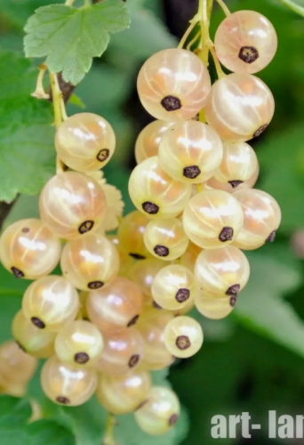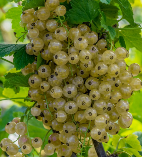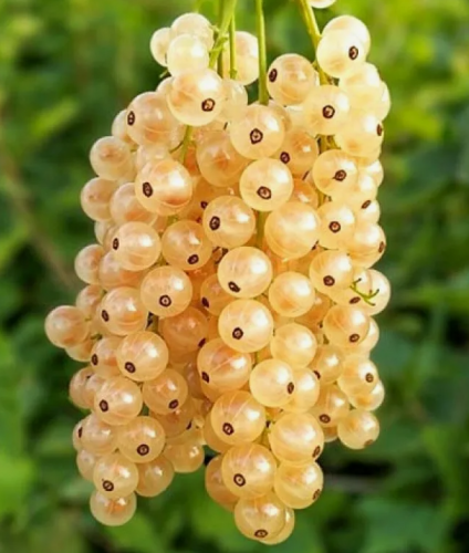 Среднерослый, полураскидистый куст, средней густоты. Кисти средней длины, плотные. Свисающие. Ягоды среднего размера, массой 0,6-1,5 г, округлой формы, окрашены в светло-желтый цвет, прозрачные, кожица тонкая, отрыв сухой. Созревание одновременное, транспортабельность слабая. Вкус кисло-сладкий. освежающий, нежный. Сорт высокоурожайный, средняя урожайность составляет 4,1 кг с одного взрослого растения. Сорт обладает высокой морозостойкостью, устойчивостью к болезням и вредителям. июль - август Смольяниновская 2-3 0,45-0,6 м