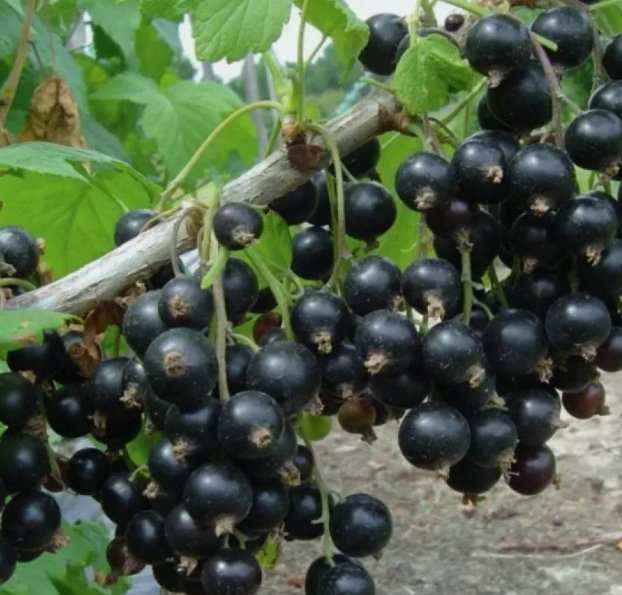 Сильнорослый, слабораскидистый куст, средней густоты. Растущие побеги изогнутые, толстые, оливково-зеленые, неопушенные. Лист трехлопастный, с глубокими вырезами, темно-зеленый, слабо блестящий, кожистый, морщинистый. Цветки средние, красновато-фиолетовые, чашелистики с яркой окраской, опушение нижней стороны отсутствует. Ягоды крупные, массой 1,9-3,2 г, округлой формы, черные, блестящие, средней плотности, кисло-сладкого вкуса, универсального назначения. Плодоножка средней длины, зеленая, тонкая. Сорт обладает высокой морозостойкостью, засухоустойчивостью, устойчивостью к болезням и вредителям. конец июля-начало августа Багира, Велой, Вологда 2-3 0,4-0,6 м