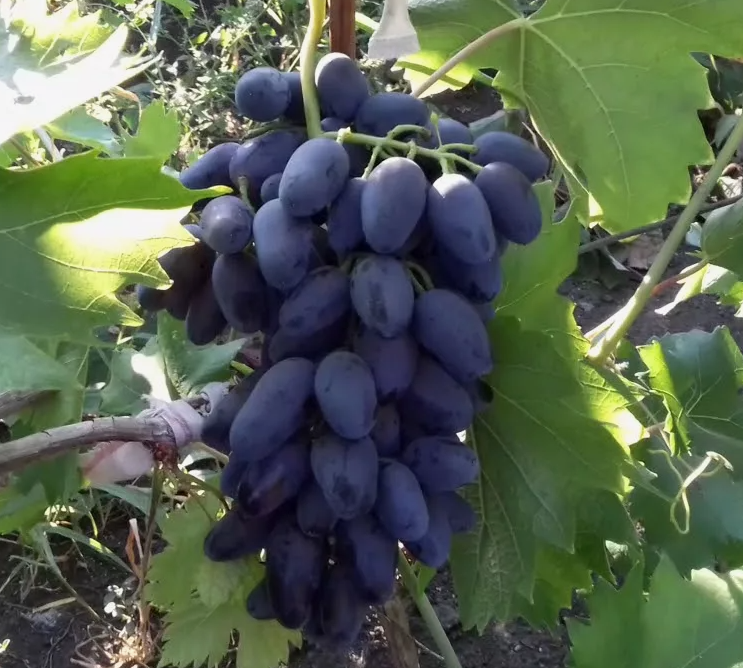 Срок созревания 105-115 дней. Кусты средней силы роста. Грозди крупные, 1500-1800 гр., цилиндроконические, от рыхлой к средней плотности. Ягода крупная, 10-12 гр., удлиненно-овальная, сине-черная. Кожица прочная, мякоть хрустящая. Вкус гармоничный, десертного типа. Сорт среднеустойчив к заболеваниям. Морозостойкость до -25°С.
