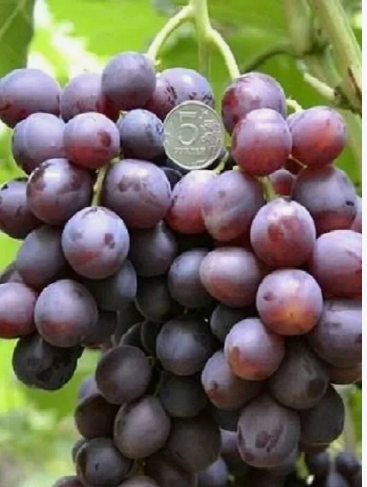 Столовый сорт, который отличается очень сладким вкусом с легким мускатным привкусом. Срок созревания ранний 95-105 дней. Куст сильнорослый. Морозоустойчивость хорошая до -23°С. Грозди крупные, правильной конической формы, средней или сильной плотности массой 500-800 гр. Ягоды крупные, массой 10-12 гр, округло-овальной формы, окрашены в темно-красный цвет, с фиолетовым оттенком. Мякоть плотная, сочная, ароматная, хрустящая. Кожица тонкая. Сорт обладает высокой устойчивостью к грибковым заболеваниям.