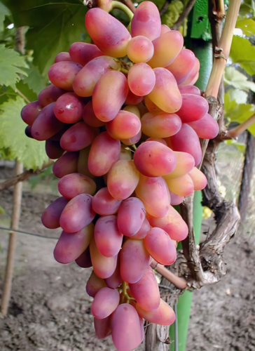 Срок созревания 115-125 дней. Кусты средней силы роста. Грозди конусообразной формы имеют среднюю плотность. Ягоды крупные, яйцевидной формы, светлые, желто-зеленые. Вкус сортовой, приятный, гармоничный с черешневыми нотами в послевкусии. Мякоть мясисто-сочная, а кожица нежная. Морозостойкость -21ºС. Сорт среднеустойчив к болезням.