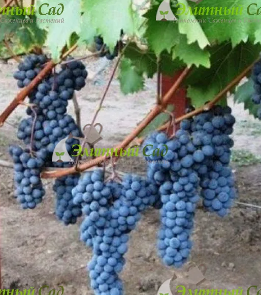 Ранний сорт. Срок созревания 115-125 дней. Кусты отличаются высокорослостью. Цветок обоеполый. Грозди крупные, цилиндроконической формы, вес от 500 до 700 гр. Ягоды овальной формы, темно-синего или черного цвета, с фруктовым вкусом. Морозостойкость до - 25°С. Сорт среднеустойчив к заболеваниям.