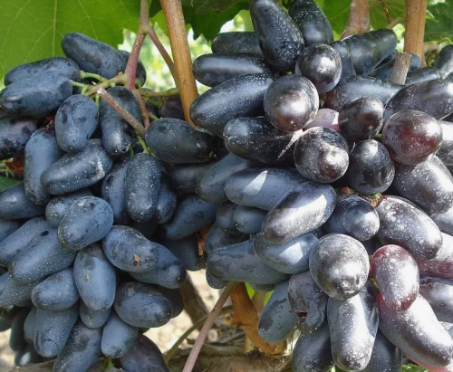 Срок созревания 115-125 дней. Кусты сильнорослые, с массивными стволами и стеблями. Грозди крупные, 700-1200 гр., конусовидные, умеренной плотности. Ягоды овальные, крупные, 10-12 гр., темно-синие или черные. Вкус яркий, с мускатным привкусом, мякоть сахаристая, сочная. Морозостойкость до -25 °С. Сорт устойчив к милдью и серой гнили.