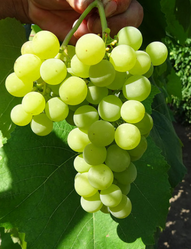Срок созревания 105-115 дней. Кусты отличаются сильным ростом. Грозди большие, умеренной плотности, массой 0,6-1,1 кг. Форма цилиндроконическая. Ягоды имеют вытянутую форму. Цвет плодов светло-желтый. Мякоть сочная с неплотной кожурой. Сорт устойчив к грибковым болезням. Морозостойкость до - 25°С.