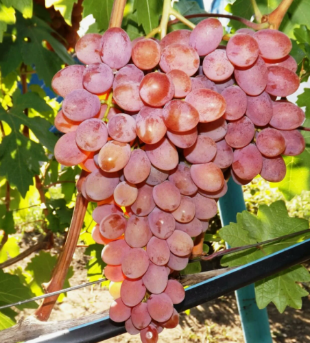 Срок созревания 105-115 дней. Грозди средней рыхлости, крупные, 700-900 г. Ягоды крупные, овальной формы. Цвет розовый с переходом в красный и коралловый. Кожица покрыта светлым восковым налетом. Мякоть мясисто-сочная. Морозостойкость до -25°С. К грибковым заболеваниям сорт устойчив.
