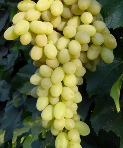 Виноград среднераннего срока созревания (125-130 дней). Грозди конической формы, массой 700-1200 г. Ягоды крупные, овальной формы и желто-зеленого цвета. Вкус приятный,не приторный , гармоничный с легкий мускатный ароматом. Морозостойкость до -22°С. Устойчивость к заболеваниям средняя.