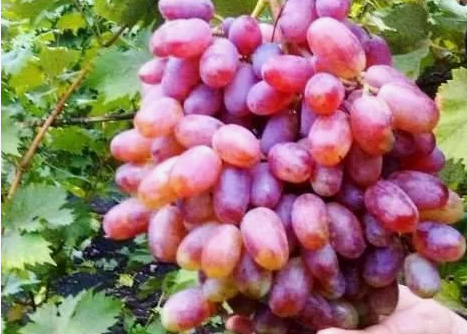 Срок созревания 95-105 дней. Грозди цилиндрической формы, рыхлые. Ягоды крупные, пальцевидной формы, цвет розовый с желтым оттенком. Вкус гармоничный с мускатными нотами. Морозостойкость до - 24° С. Сорт устойчив к оидиуму и милдью.