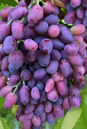 Срок созревания: 90-100 дней. Гроздь крупная, цилиндроконическая, средней плотности или рыхлая, средней массой 612 г. Ягода очень крупная, черная, яйцевидная с тупым кончиком или овальная, средней массой 10,7 г. Мякоть хрустящая, плотная, кожица средней толщины, покрыта средней густоты восковым налетом. Вкус гармоничный. Урожайность высокая. Кусты большой силы роста, вызревание побегов хорошее. Устойчивость грибным болезням изучается. Требует укрытия кустов на зиму.