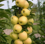 Среднерослое, колоновидное дерево, высотой 2-2,2 м. Крона отличается компактными размерами и малыми габаритами. Плоды крупные, массой от 100 до 250 г, округлой формы. Кожица плотная, нежно-желтого цвета, без покровной окраски. Мякоть белая, сочная, ароматная, крупнозернистая, сладкого вкуса, с медовым привкусом. Съемная зрелость плодов приходится на конец августа - начало сентября. Первое плодоношение возможно в год посадки. Морозостойкость, устойчивость к болезням и вредителям - высокая. конец августа-начало сентября Васюган, Президент, Останкино 1-2 1,5-1,2 м