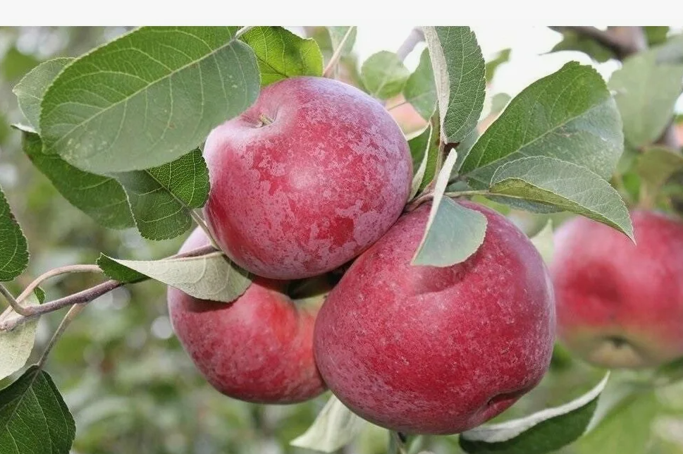 Быстрорастущее дерево, с широкоокруглой, разреженной кроной. Побеги средней толщины, слегка изогнутые, темно-коричневые с вишневым оттенком. Листья зеленые, средней величины, овальной формы. Плоды крупные, выровненные, округло-конической формы, слаборебристые. Поверхность гладкая, с сильным восковым налетом. Основная окраска желтовато-зеленая, почти полностью покрыта полосатым, размытым малиново-красным румянцем, при съеме окраска приобретает бордовый оттенок. Мякоть белая, мелкозернистая, сочная, нежная, приятного кисло-сладкого вкуса. Сорт скороплодный, ежегодно плодоносящий и урожайный. Имеет среднюю зимостойкость. Отличается высокой устойчивостью к засухе. Устойчивость к болезням и вредителям - средняя. сентябрь-октябрь Апорт, Ред Крафт, Слава победителям 3-4 1-1,5 м