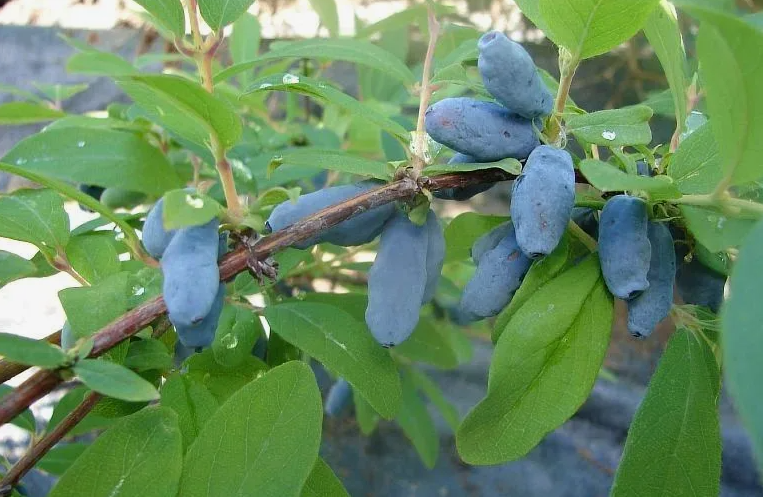 "Куст сильнорослый, высокий (более 2-х метров), с плотной приземистой кроной овальной формы. Побеги толстые, прямые, с редкой ворсистостью. Листья крупного размера, плотные, насыщенного темно-зеленого окраса. Ягоды среднего размера (весом 0,6 — 0,8 г, в длину — до 1,7 см), по форме — удлиненно-овальные, с тупой верхушкой. Кожица прочная, средняя по толщине, по окрасу — голубовато-синяя. Мякоть очень хорошего сладкого вкуса (почти без кислоты), в меру ароматная, с нежным земляничным оттенком. Показатели урожайности хорошие: с одного куста можно собрать от 1,5 до 2,5 кг ягод. Сорт морозостоек, хорошо переносит резкие перепады температуры в зимний период. Устойчивость к болезням высокая.