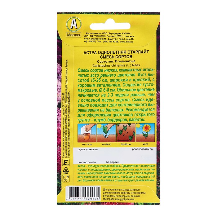 Семена Астра Старлайт, смесь сортов Одн Ц/П 0,1г