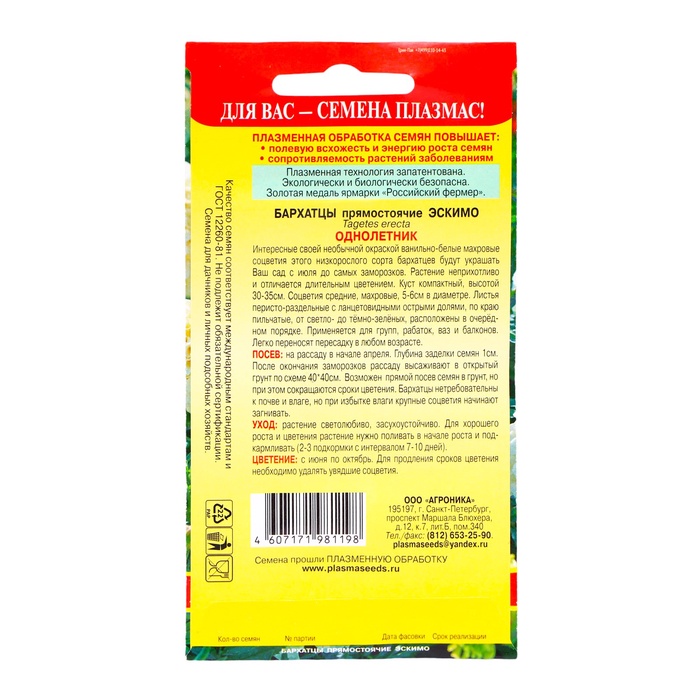 Семена Бархатцы низкорослые "Эскимо", 10 шт
